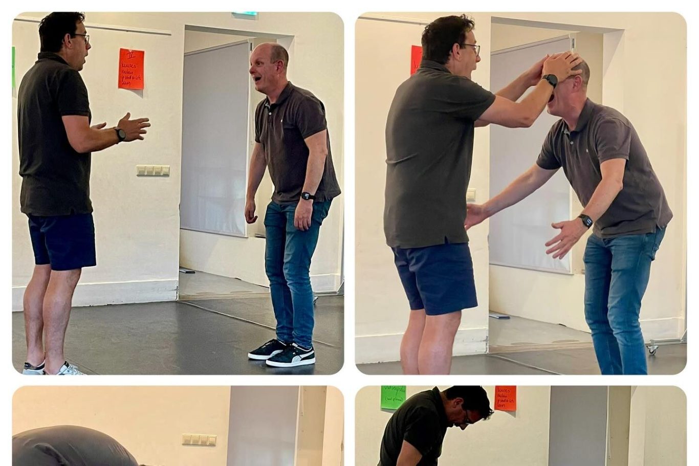 We trainen iedere week met heel veel plezier. Iedere les is al een cadeautje: door improvisatie kun je buiten gebaande paden gaan, risico's nemen, je gevoel en emoties de ruimte geven, hartstochtelijk lachen, zelfs (misschien wel juist) als dingen fout gaan, ...