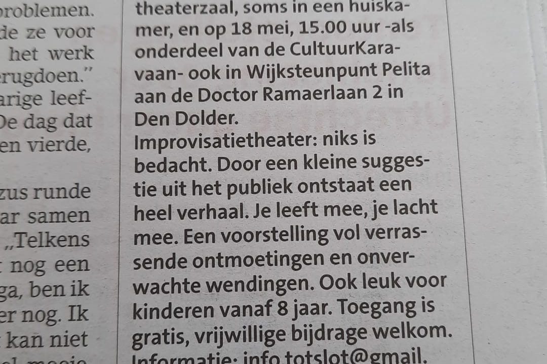 We treden met enige regelmaat op, tegen (met) andere theatersportgroepen, in de Cultuur Karavaan of je kunt ons uitnodigen voor een voorstelling, demo of workshop improvisatie.